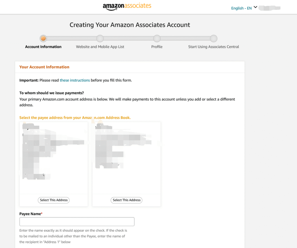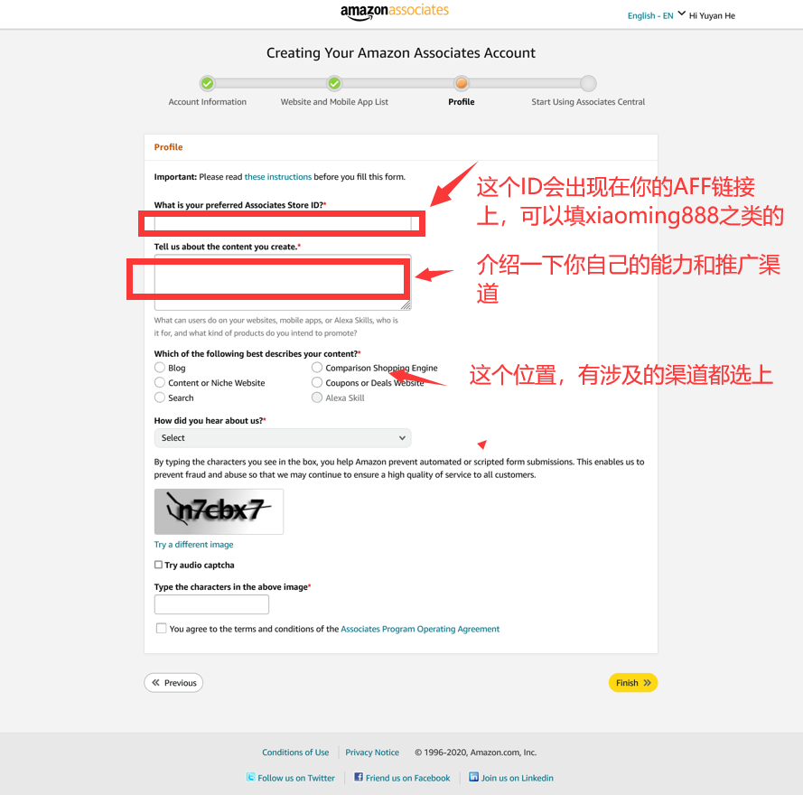 第一步,申请一个亚马逊联盟账号,只需要一个能够收验证码的邮箱即可。中国国内推广者申请的时候也不需要魔法,甚至都不一定需要gmail账号,只需要使用国内的邮箱,个人的真实信息即可。可以算是零门槛了。用户姓名采用中文名拼音,譬如王小明(Xiaoming Wang), 这个可以跟你的银行卡信息保持一致(Payee Name)。