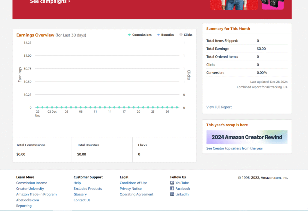 第四步,平台审核通过后,就可以进去Affliate Dashborad数据页面啦。你推广后,你的链接被点击,用户购买订单情况都可以在这里看。开始你的联盟推广旅程吧!亚马逊联盟 接受Payoneer付款渠道,可以采用Payoneer 收款。