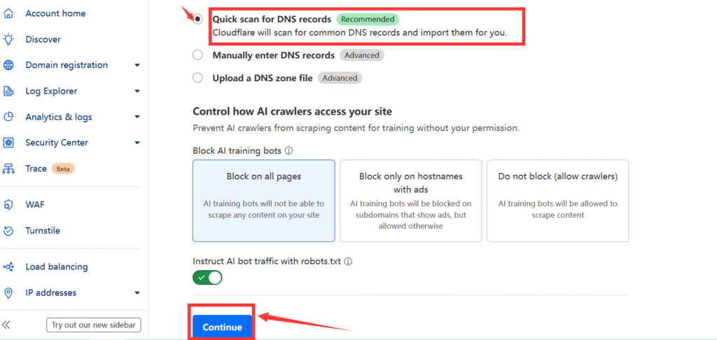 如图,选择系统推荐的选项,Quick Scan for DNS records, 当然你也可以选择其它选项,我只是觉得第一个会比较方便。