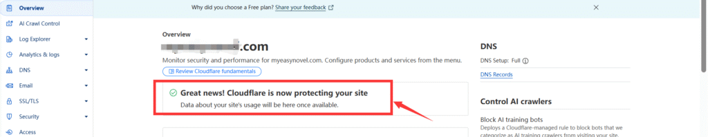 Cloudflare 设置成功!Cloudflare is now protecting your site