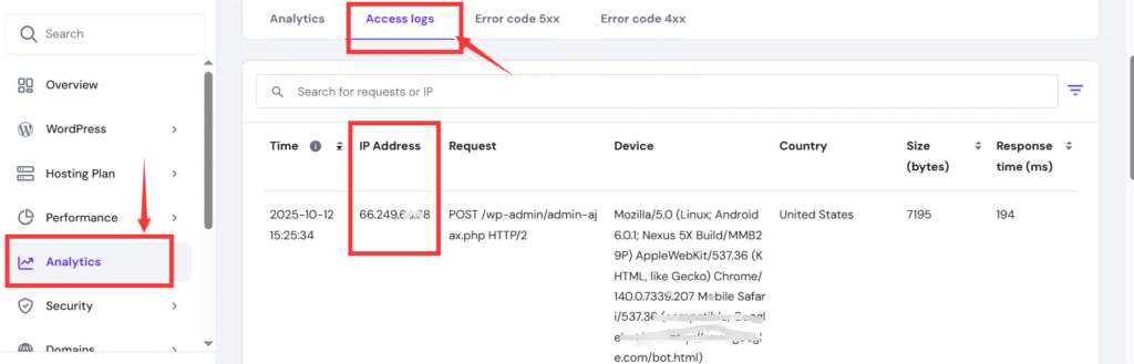 Hostinger后台查找IP, 筛选出Request数量异常的IP,在输入这个IP直接屏蔽即可。效果立竿见影,不由得要给Cloudflare点赞啊。