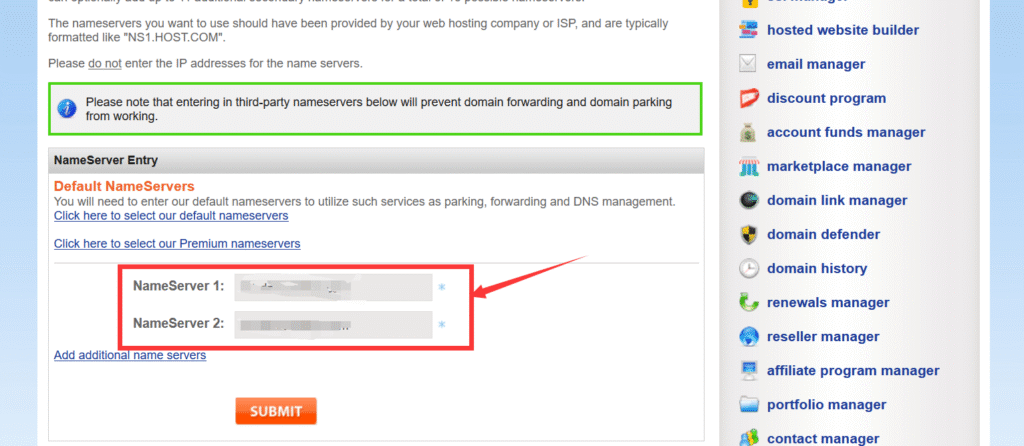 在你的域名列表里选中你要修改的域名,然后点击Change Nameservers